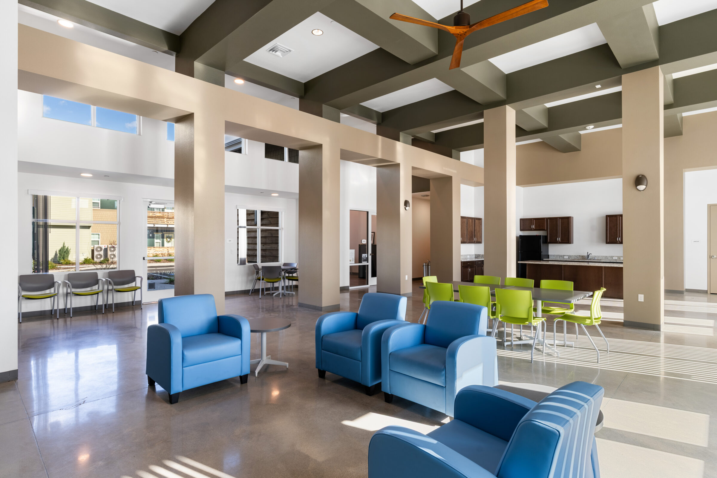 Avalon Commons is a 69,000-SF affordable garden-style multifamily community featuring 60 units across six two-story Type V slab-on-grade buildings. Designed with both comfort and connection in mind, the development includes a community building offering a computer room, full kitchen, multipurpose room, fireplace, lobby, fitness room, and a behavioral health services office, along with a dedicated laundry building and surface parking.